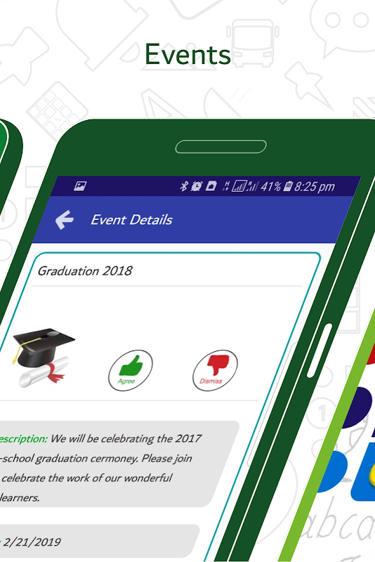 - Krijg informatie over evenementen en sturen goedkeuring voor de deelname van het kind