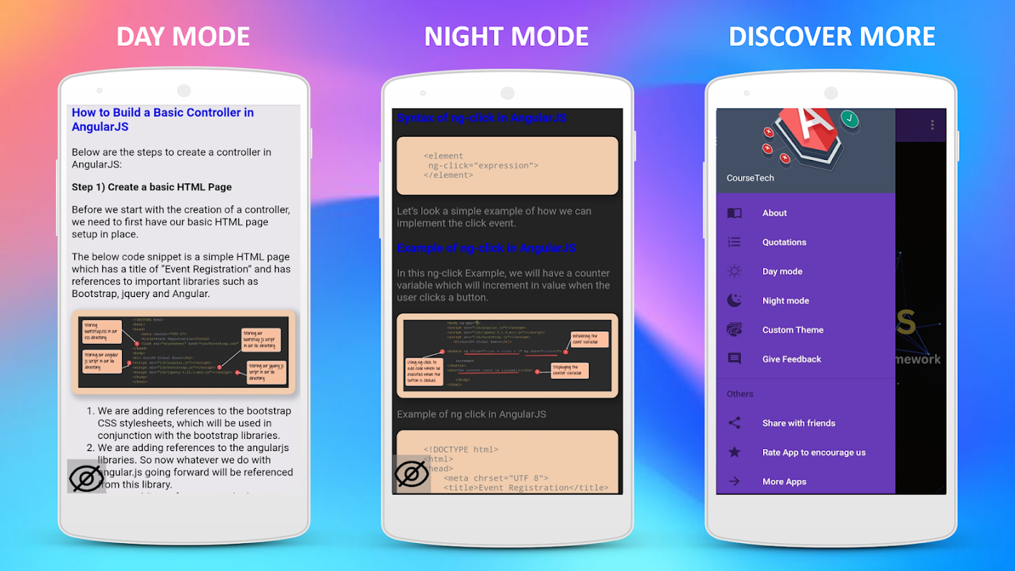 In deze app ontdek je stap voor stap de eenvoudigste en meest effectieve manier om AngularJS te leren. 🚀