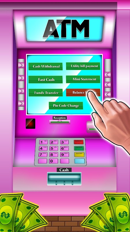 Met dit ATM-leerspel kan de klant geld opnemen via debetkaart of creditcard op de POS-machine. Met dit gratis geldautomaat- en beheerspel leer je het hele proces van het gebruik van de geldautomaat in deze informele kassierprofessional begrijpen. Dit geld- en bankspel is zo leuk! Laten we de beste ATM-manager zijn om klanten te faciliteren in Learn ATM Machine!