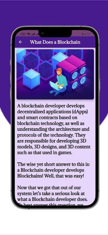 De Learn Blockchain Programming-app is een uitgebreide mobiele applicatie die is ontworpen om gebruikers te helpen kennis en vaardigheden op te doen in de ontwikkeling en programmering van blockchain.