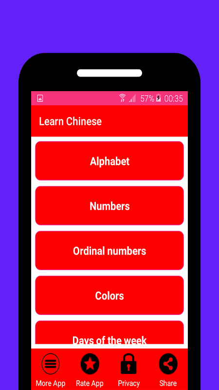 Leer Chinees Offline met categorieën voor de beginner om Chinees vocabulaire te leren om in de toekomst een nieuw gesprek te voeren.