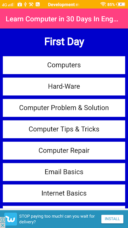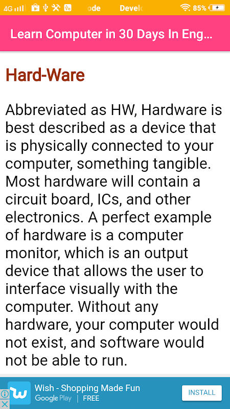 Als je nieuw bent in de computer, maak je geen zorgen, met deze "Leer van de computer in 30 dagen" app, zult u zeer verbazingwekkende dingen over de computer leren van basic.