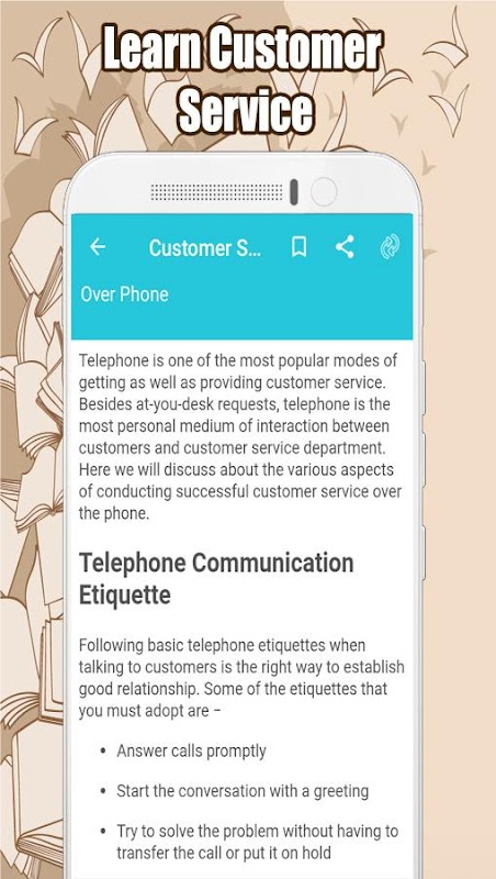 This Customer Service tutorial app contain lot of this things which will increase your learning experience.
