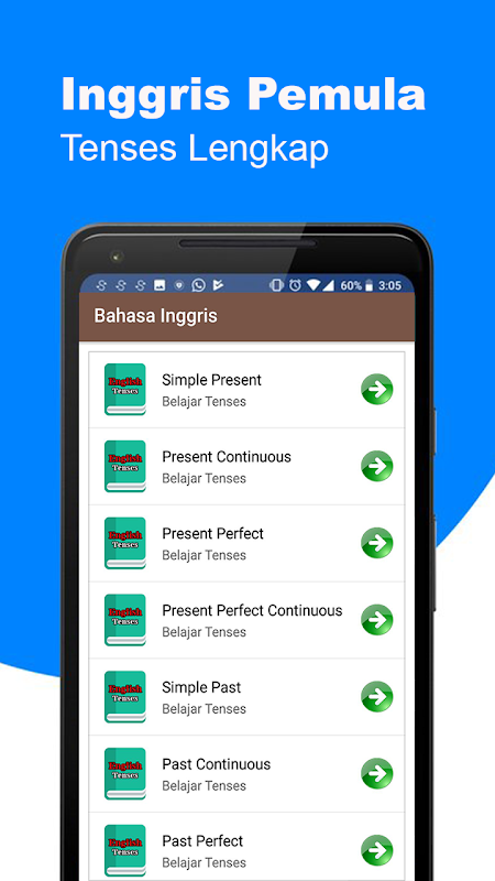 Belajar Bahasa Inggris Pemula Offline - Mahir 24 Jam umum digunakan sehari hari percakapan sehingga membuat kamu mahir berbicara bahasa inggris. Jika kamu ingin belajar grammar aplikasi ini juga menyediakan lebih dari 50 topik seperti tenses, verb, noun dan lain-lain. Aplikasi ini sangat cocok untuk pemula maupun yang sudah mahir berbahasa inggris. Aplikasi ini sangat direkomendasikan untuk orang yang mau belajar bahasa inggris