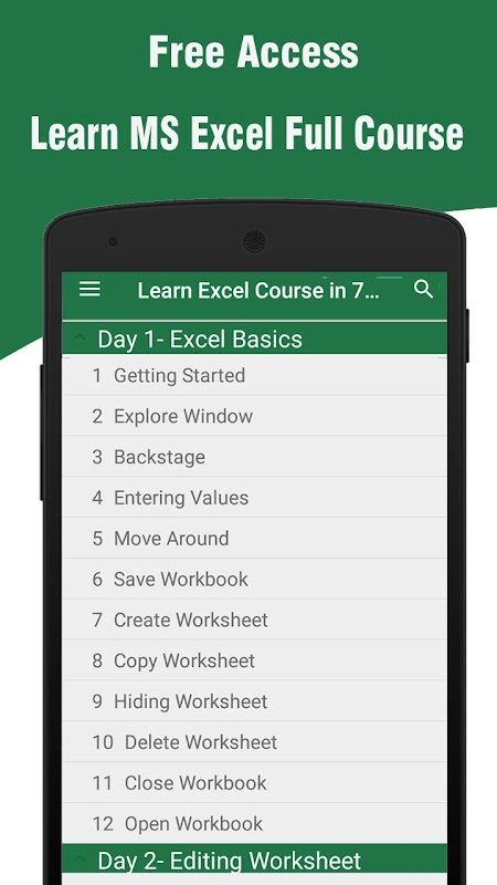In this app we discussed about each and every aspect of MS Excel from basics to advanced.