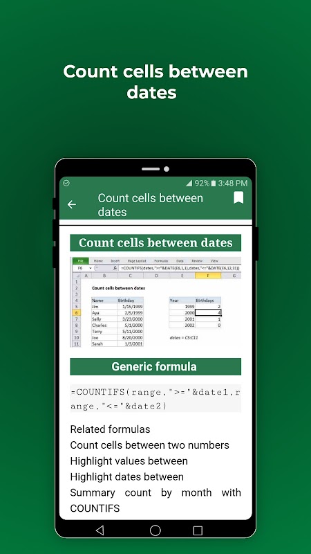 Leer Excel Formules Functies Voorbeeld App Offline. VERT.ZOEKEN, vermenigvuldigen, percentage. U kunt alle Excel-formules en -functies ook snelkoppelingen tips in één app. We organiseren alle formules, functies en snelkoppelingen afzonderlijk op een zeer eenvoudige en schone manier, zodat u ook vanuit de zoekbalk kunt zoeken. We hebben alle formules, functies die in deze app zitten, op een rijtje gezet.