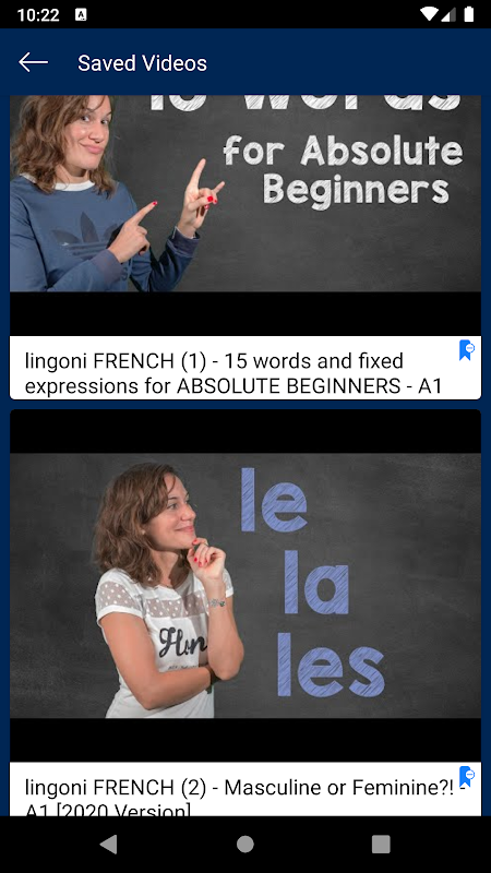 This application includes videos full of fun and engaging mini-lessons that teach you everything from the French alphabet to French grammars and train your listening,