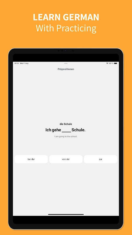 Of je nu in Duitsland, Oostenrijk bent of Zwitserduits in het buitenland studeert, dit is de oefenapp die je nodig hebt. We bieden een uitgebreid traject naar vloeiendheid, waardoor het leren van een nieuwe taal makkelijker dan ooit is.