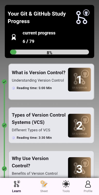 Ontgrendel het volledige potentieel van versiebeheer met Learn Git en GitHub 2024, uw uitgebreide gids voor het beheersen van Git en GitHub. Of je nu een beginner of een gevorderde ontwikkelaar bent, deze app biedt alles wat je nodig hebt om vaardig te worden in Git-workflows en GitHub-samenwerking.