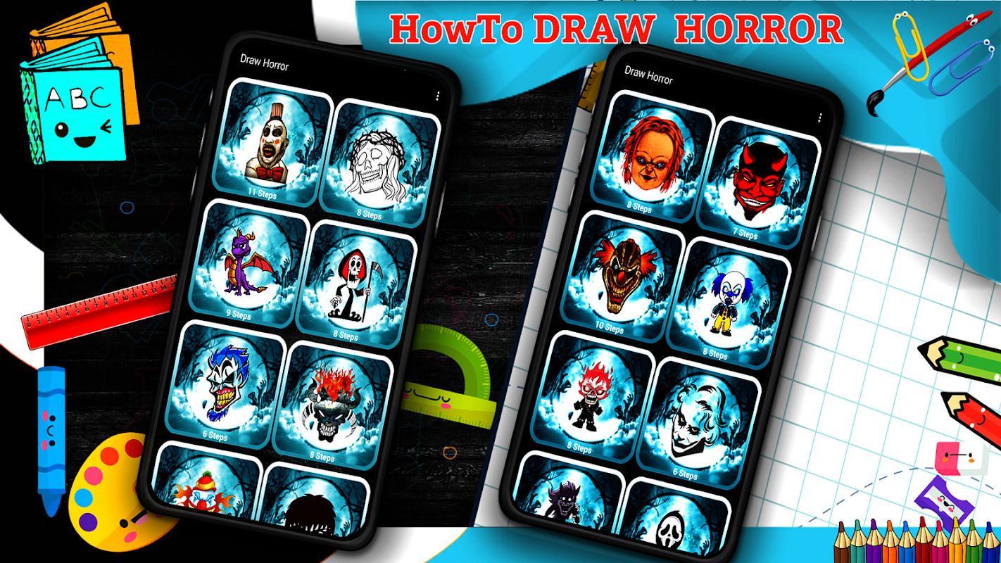 How to Draw Horror Characters Step by Step will teach you how to Draw Horror shapes of different types. How to Draw Horror Book app contain best collections of Horror character, its very easy to use and learn very quickly.