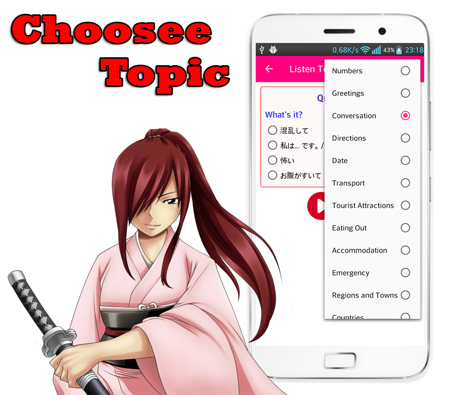* Conversatie: leer dagelijks Japans met gratis Japanse conversatiezin. Erg handig voor jou wanneer je moet reizen en uitgaan zonder netwerk!