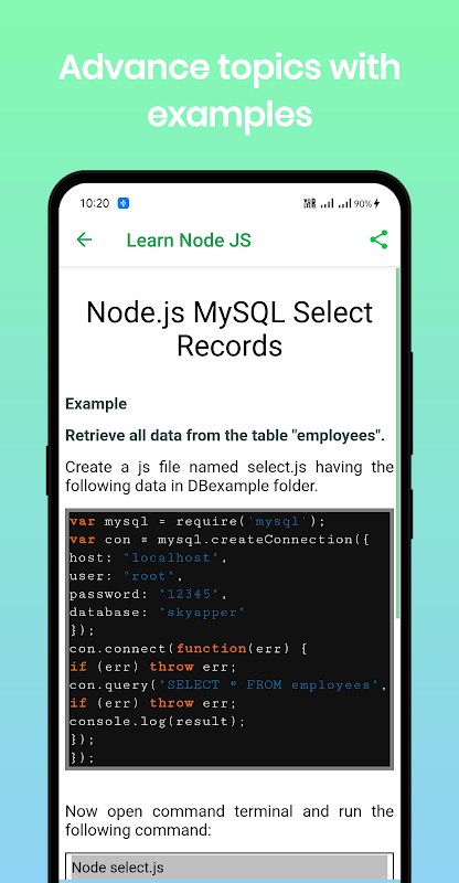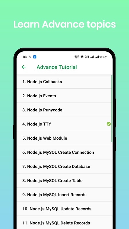 Leer Node.js offline programmeren is een leerprogramma-app voor de nieuwe leerling en studenten