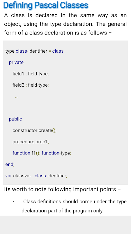 Pascal is a procedural programming language, designed in 1968 and published in 1970 by Niklaus Wirth and named in honour of the French mathematician and philosopher Blaise Pascal. Pascal runs on a variety of platforms, such as Windows, Mac OS, and various versions of UNIX/Linux. This App is a free course and easy to use.This App should give you basic understanding on Pascal Programming concepts, and after completing this tutorial, you should be at intermediate level of expertise from where you can take yourself to higher level of expertise.