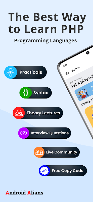 Begrijp PHP als nooit tevoren! Van basissyntaxis tot geavanceerde concepten zoals database-integratie, objectgeoriënteerd programmeren en meer: onze app biedt diepgaande uitleg om u bij elke stap te begeleiden.