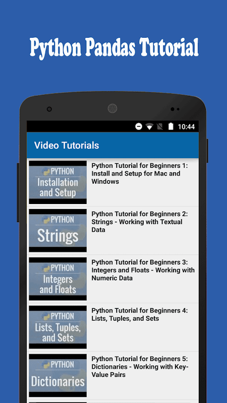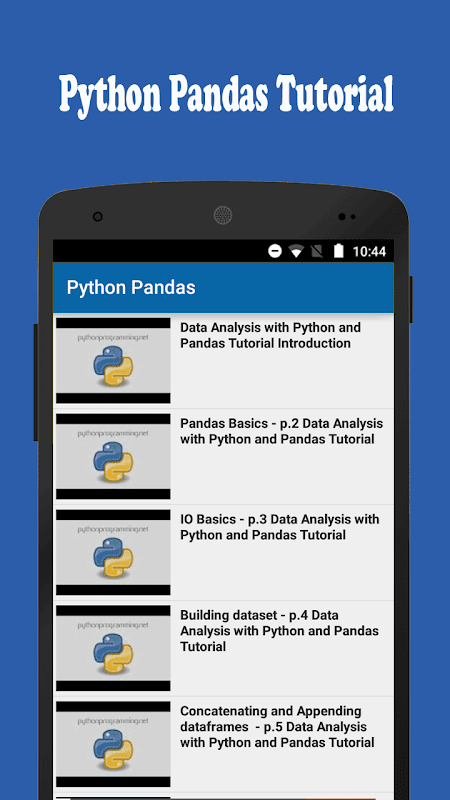 Pandas is an open-source, BSD-licensed Python library providing high-performance, easy-to-use data structures and data analysis tools for the Python programming language. Python with Pandas is used in a wide range of fields including academic and commercial domains including finance, economics, Statistics, analytics, etc.In this App, we will learn the various features of Python Pandas and how to use them in practice.This App is a free python Pandas course and easy to use.