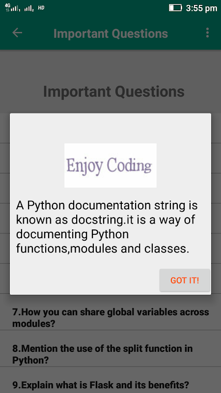 Dit Python Programming app kunt u elementaire Python programmering notities nemen in uw android. Het bevat ongeveer 40+ Python programma's, en veel FAQ's.