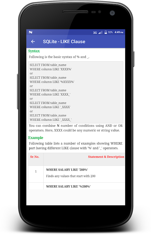 ►This App is opgesteld voor beginners om hen te helpen de basis-to-geavanceerde concepten met betrekking tot SQLite Database Engine begrijpen. ☆