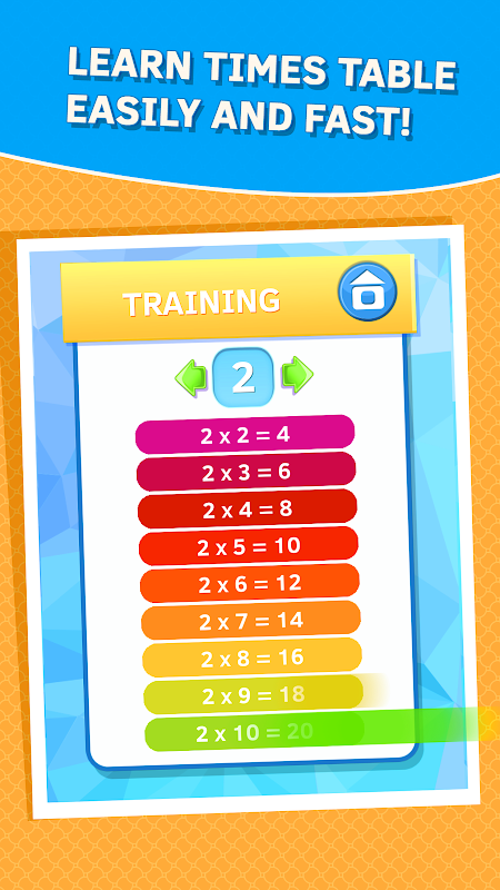 - Endless spel in de modus maaltafels quiz. Ga terug naar elke leerfase wanneer u maar wilt