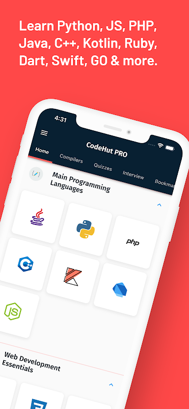 Naast onze uitgebreide lessen bevat onze app ook programmeertaalcompilers en quizzen om u te helpen uw kennis en vaardigheden te testen. Of je nu een beginner bent die de grondbeginselen van computerprogrammering wil leren of een ervaren ontwikkelaar die zijn vaardigheden wil uitbreiden, onze app heeft iets voor jou.