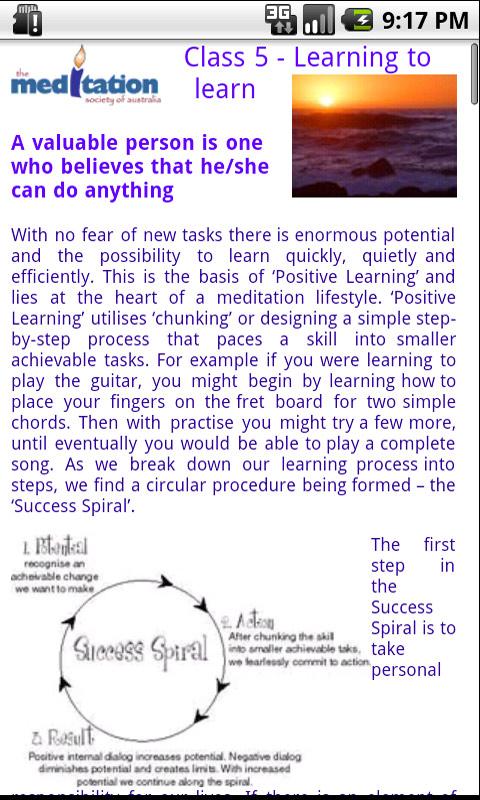 Deze zeer populaire meditatielessen van de Meditatie Society van Australië zijn nu een app die een verscheidenheid van meditatietechnieken, waaronder mantra, mediteren met de adem en muziek, concentratie en meditatie op een object voorzien. De prachtige geleide meditatie audio voor elke klasse geven je een fantastische hulp aan je eigen meditatie, en zal het hele proces fris en nieuw te houden. Dit is vijf afzonderlijke lessen over onderwerpen als basis als de mechanica van meditatie tot en met de betekenis van het leven.