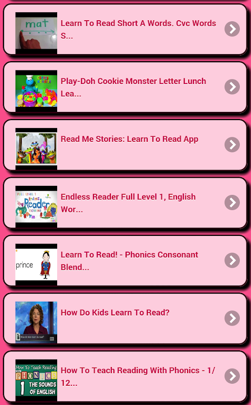 It is a good day to start enjoying the world of reading, because with this application, children and adults can enjoy together at home reading your favorite books, and your best use of the application, this will record your tutorial videos already seen and it marks the new lessons that have been updated to not waste time and enjoy the easiest way to learn to read. So do not waste more time and please download this free application on your mobile (cell) or Tablet and you will not regret, enjoy from home the wonderful world of reading.