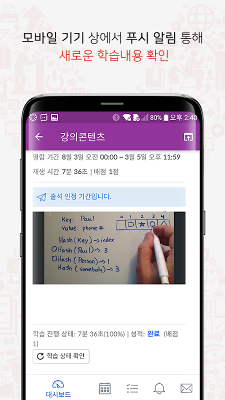 -Mobiele push-melding - Controleer snel de benodigde informatie, zoals nieuw geregistreerde leerinhoud, deadline-opdrachten, etc.