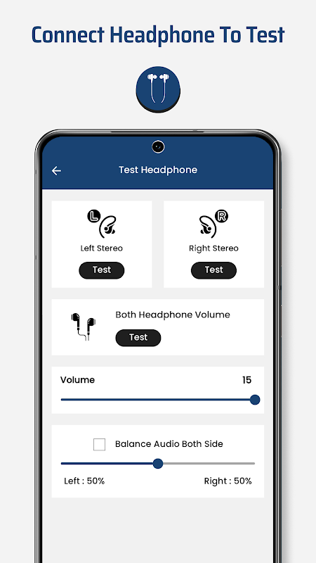 • Test wire and wireless earphones using the left, right, or both earphone options.