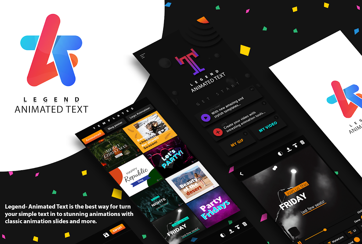 Geniet met deze fantastische Legend - Text Animation Maker en app voor het maken van gifs.