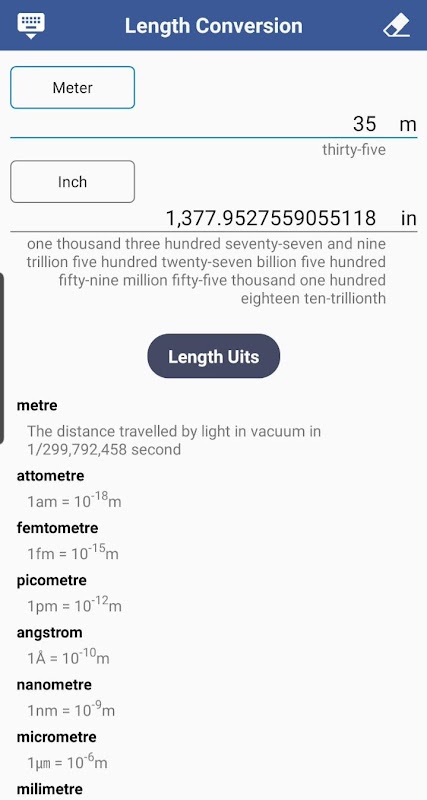Het is een wederzijdse conversie-app tussen verschillende lengte-eenheden.