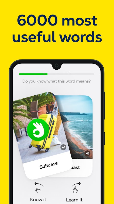 Je leert elke dag nieuwe woorden en verbetert je Engelse woordenschat. En met de gespreide herhaling, slimme herinneringen en slimme associaties vergeet je ze niet.
