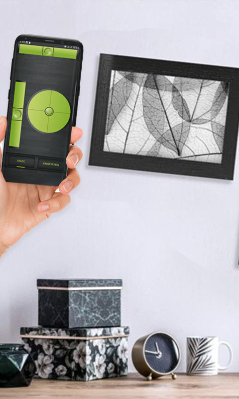 Hang uw foto's en fotolijsten horizontaal aan de muur, maak planken en basiskasten, installeer zelf tafels en meubels en gebruik de Level Tool - Bubble Level App om het niveau correct te kalibreren en dingen te ordenen.