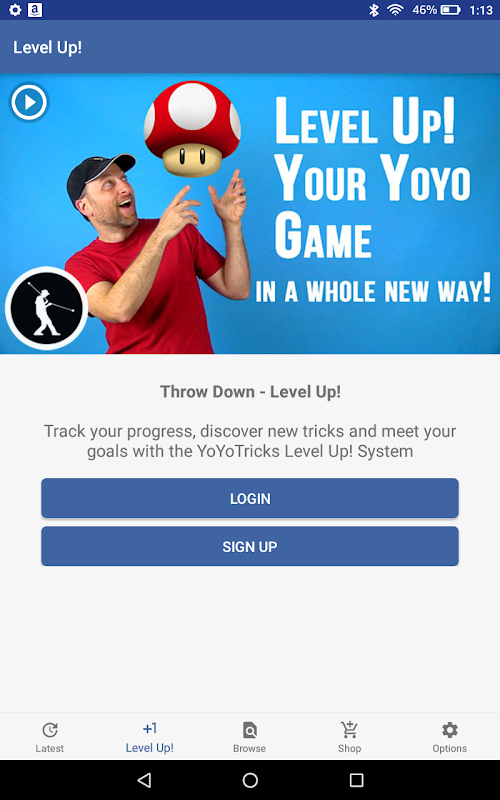 Met de YoYoTricks.com Android-app kan de gebruiker snel elke gewenste YoYoTricks.com-video vinden en deze live streamen. Video's bevatten ook details over de aanbevolen jojo om de truc te leren en maken het gebruikers gemakkelijk om die jojo te kopen en onze winkel te doorzoeken voor andere producten. Gebruikers kunnen zich aanmelden of inloggen bij Level Up! om de voortgang bij te houden en te plannen welke tricks je vervolgens leert.