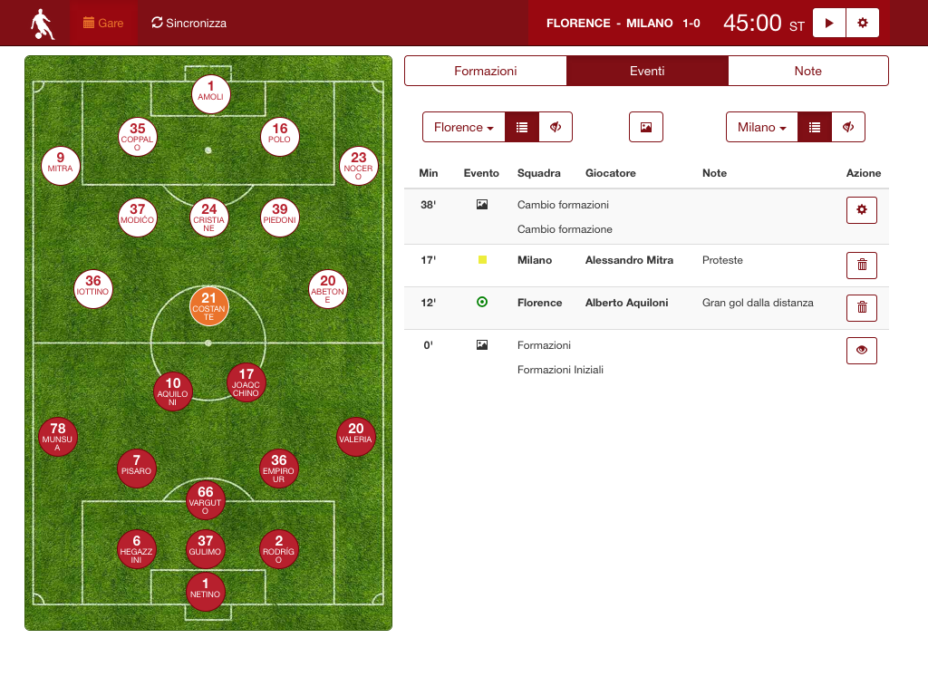 Connected to the database mother, allows players to upload and place the bill on the green rectangle according to the form in which the team plays, and be able to report on the single player race with a click.