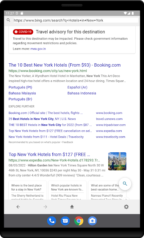 - De app heeft een ingebouwde zoekfunctie. Opmerking: Zoekresultaten worden geleverd door Microsoft Bing.