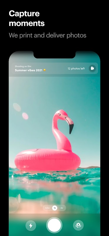 Wegwerpcamera-app met vintage camerafilters en levering inbegrepen