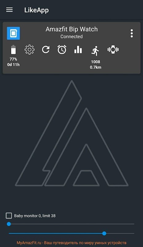 De applicatie is alleen getest met Amazfit Bip-horloges, dus de beschrijving van de applicatie is alleen geschikt voor het werken met Amazfit Bip-horloges.