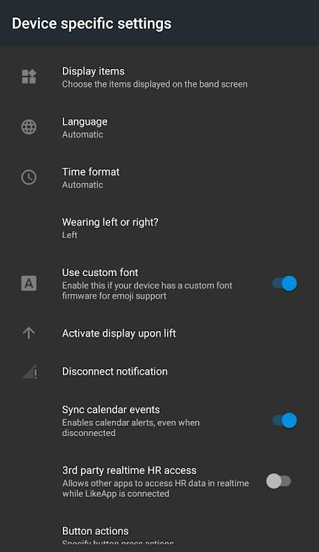 LikeApp is een uitbreiding van de GadgetBridge-app met de volgende wijzigingen: