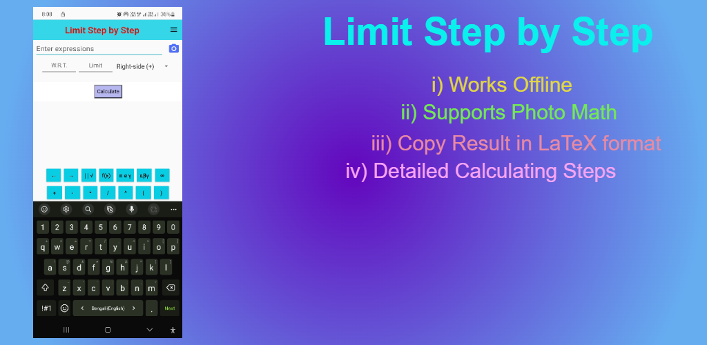 De volgende opvallende kenmerken onderscheiden deze app van andere Limit-rekenmachines: