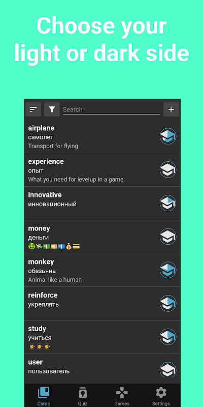 Als je duokaarten of een andere flashcard-maker gebruikt, helpt onze app je om Engels te leren, zoals een woord.