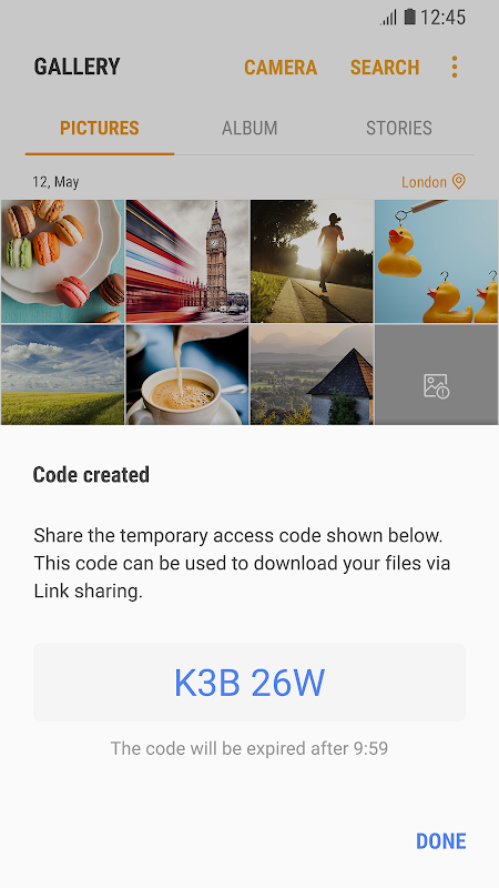 . Send to contacts, Create a link, Share with Code