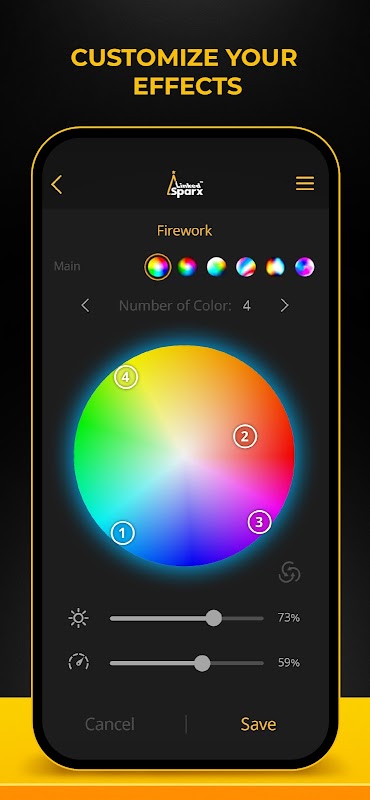 - Creëer en pas aan: selecteer kleuren, pas snelheid of helderheid aan