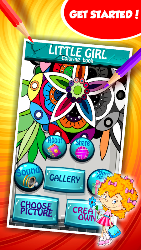 Let op dat het schattigste kleine mens zichzelf beschermt en haar vriend de kikker vormt de regen met een groot blad. Ze is zo lief dat het beeld van haar zelfs het koudste hart kan smelten. Wat je zal opwinden is het feit dat je nu de bovenste schets van haar kunt verfraaien en het is maar een klik verwijderd van jou. Dus aarzel niet, maar download gratis de nieuwste Little Girl Coloring Book app en tik op de verfbak met de coolste schaduw om het aan te passen. De kinderen zullen zich verbazen met dit spel, die hen uren vermaakt. Laat ze op je telefoon afspelen en hun creativiteit op een prachtige manier uiten met behulp van de illustratie van het sensationele kind met mooie pigtails die in een hand lachend houden en een waterige emmer houden en een fijne bloem in een andere. Gebruik hun kunstwerk als fabelachtige decoratie voor uw tablet en u zal er uit de menigte staan. Iedereen zal verliefd worden op de mooiste tekeningen uit de populaire kleurtjescollage applicatie.