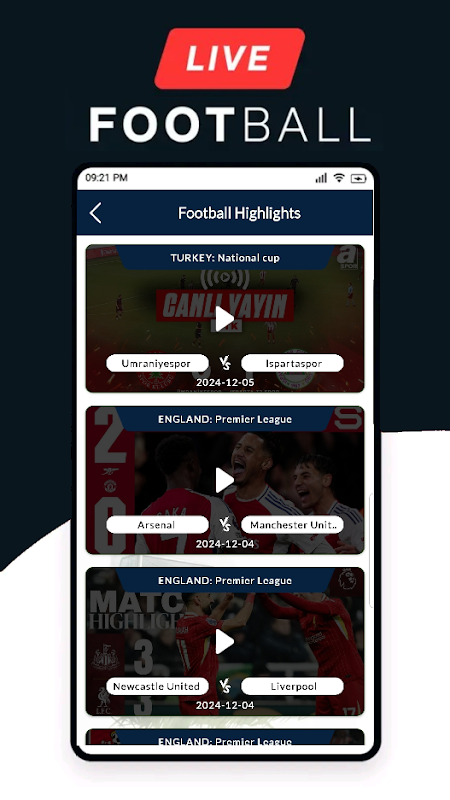 Live Football TV HD geeft je toegang tot een wereld van voetbal, van live uitslagen tot diepgaande statistieken, opstellingen en hoogtepunten. Ontdek wedstrijden en ontvang gedetailleerde statistieken en live wedstrijdscores voor elke game.