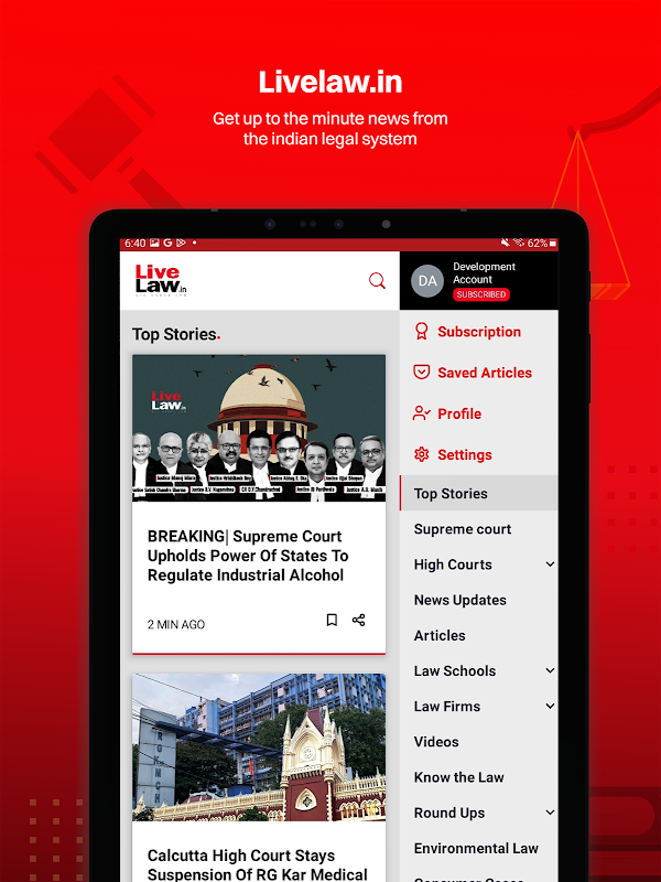 LiveLaw.in is een uitgebreid juridisch nieuwsportaal dat u op de hoogte houdt van het laatste juridische nieuws uit India en de rest van de wereld. Met een opvallende lay-out, maar toch eenvoudig en handig, kunt u er nu zeker van zijn dat u niets belangrijks mist. Bovendien heeft u de meest recente informatie binnen handbereik, waardoor u juridische beoordelingen kunt maken en juridische risico's effectiever kunt beheersen.