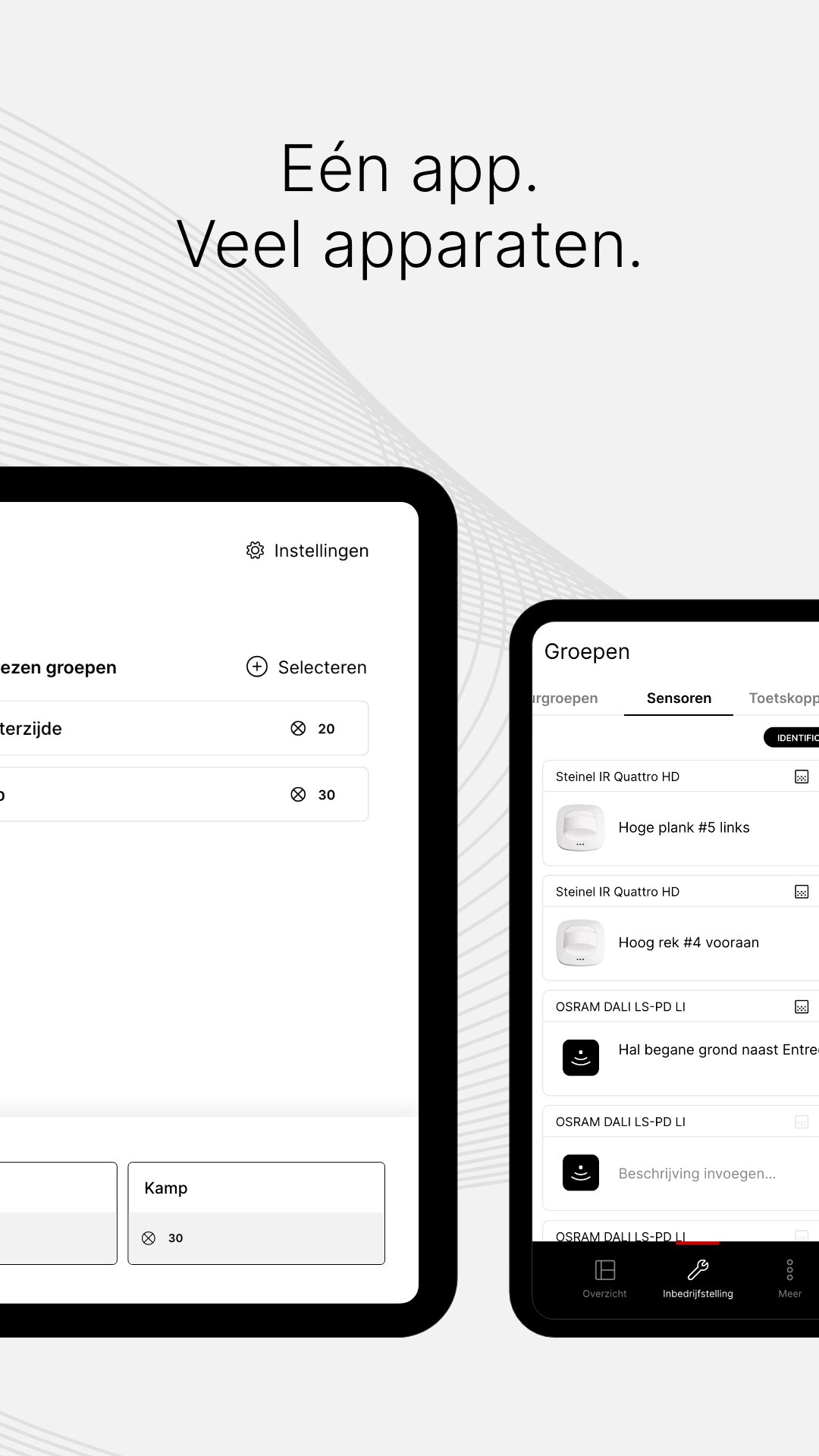 - Veilige inbedrijfstelling en bediening van het verlichtingssysteem gecombineerd in één app.
