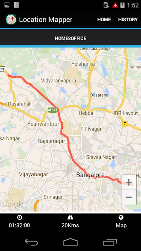 This Application Location Mapper is one of its kind for tracking your (user's) locations and marking the tracks from the point you Start till you Stop it , It gives you a special feature of storing the location traveled and you can re-plot the traveled route from your travel History on the fresh Map , it also gives an option of delete the tracks too .
