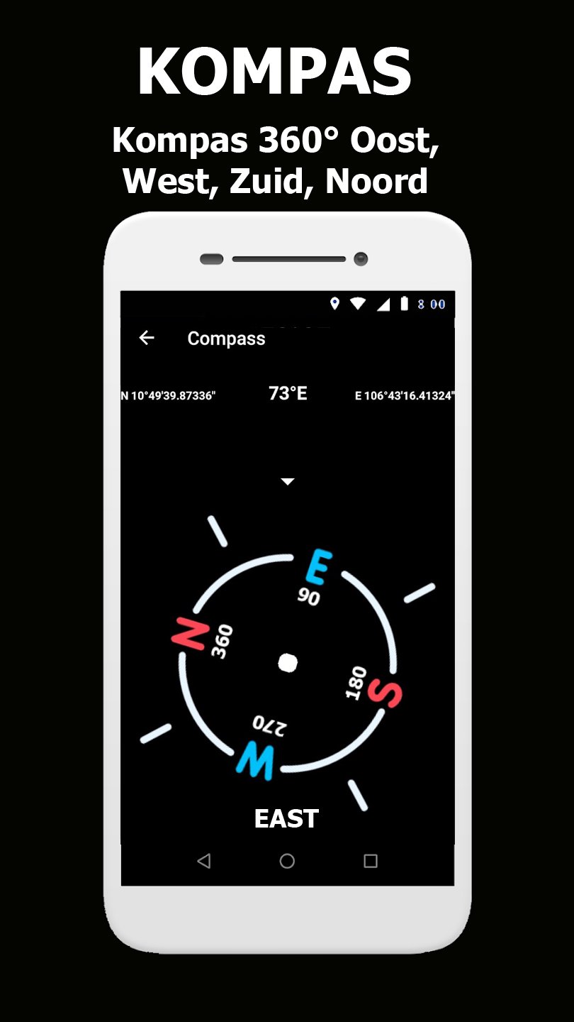 Kompas met richting oost west zuid noord, kompas 360° kan de hoek in elke richting berekenen door het apparaat te draaien.