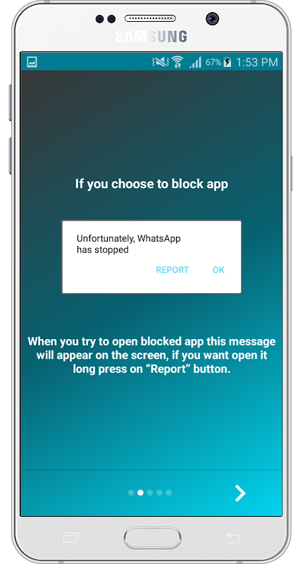 If you block an app and try to open it “Unfortunately App has stopped” message will appear.