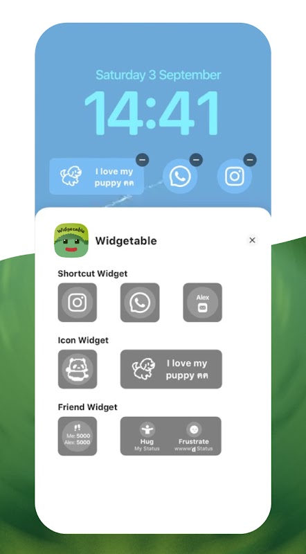Widget-widget voor vergrendelscherm - geniet van geweldige widgets voor vergrendelscherm en startscherm of maak je eigen mooie widgets met de gebruiksvriendelijke widget-editor. Widgetable maakt je telefoonscherm schattig!