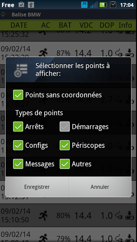 - les derniers points de la balise avec rafraîchissement automatiquement, et